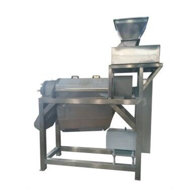 PLZ型破碎榨汁机是破碎机与榨汁机的组合机型。该机主要由:进料斗、破碎部件、支架、出料斗、传动部件等组成,接触物料部件材料均为食品级不锈钢。广泛适用于各类水果及根茎类瓜果的破碎取汁工艺。 破碎机主机由锤片、筛网、主轴、机身等部件组成。整机由进料斗、破碎装置、前支座、螺旋、过滤网、盛汁器、后支座,出渣槽等部件组成,螺旋主轴左端支承于滚动轴承座内,右端支承于手轮轴承座中,电动机通过三角皮带轮驱动螺旋进行工作。工作原理:本设备的主要构件是进料斗上安装破碎装置,转子上有四组飞刀和一组底刀,飞刀绕自身轴线在固定不动的底刀间隙内旋转,从而使果蔬得到粒度2-5毫米破碎,直接进入螺旋榨汁系统,以提高榨汁效果。螺旋榨汁的主要构件是螺旋,螺旋沿着料渣出口方向底径逐渐加大而螺距逐渐减少,当物料被螺旋推进时,因螺旋腔体积缩小,形成对物料的压榨。