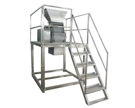 HCP型锤式破碎机为我公司测绘设计的具有九十年代国际先进水平的果蔬破碎机械,适用于苹果、梨、胡萝卜、土豆等果蔬原料的破碎,具有结构新颖、紧凑、节能、生产能力大、适用范围广等特点。全部采用优质不锈钢制造,符合食品卫生,既可单机使用,又可方便连线。 该设备主机由机门、锤片、筛网、主轴、机身等部件组成,工作时电机经一对皮带轮等速驱动主轴高速旋转,主轴上装有3组若干把锤片。物料从升运机自由落入进料斗,被高速旋转的锤片切碎,由于离心力的作用,破碎后的物料颗粒由腰形的筛孔 落入出料斗,然后由另配的螺杆泵泵入下道工序。经破碎后的物料粒度一致,粒度大小可由腰形筛孔大小决定。